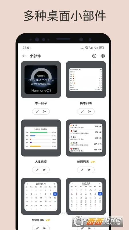 7. 支持多种桌面小部件,可自定义日期封面、背景。