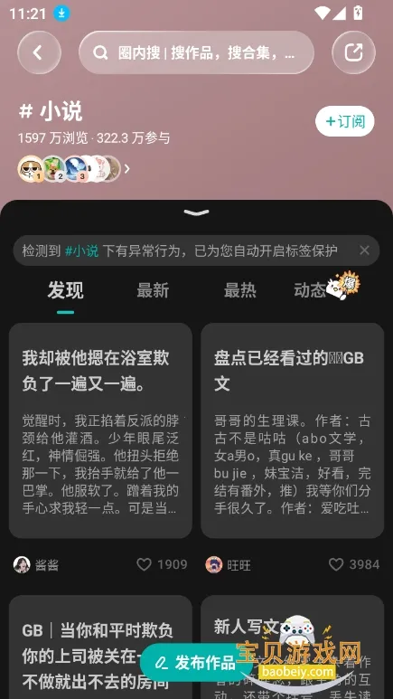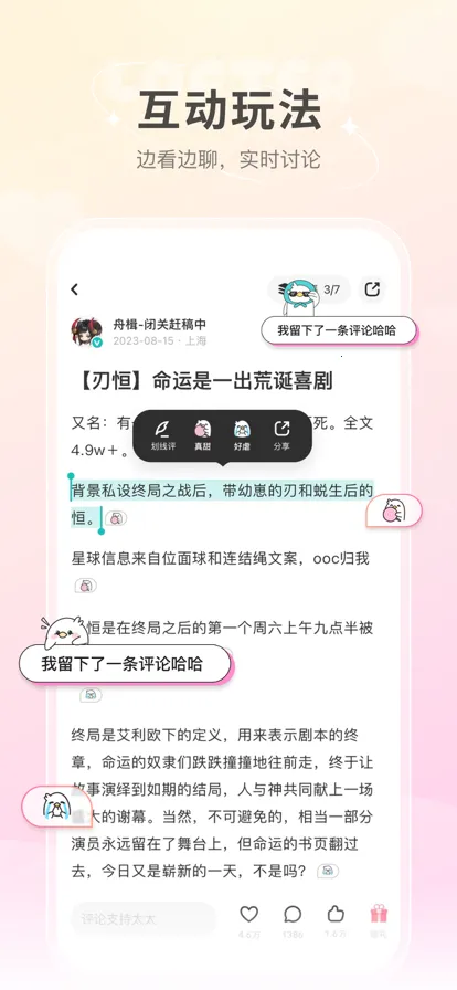 LOFTER小说安卓版是网易的优质阅读app,涵盖小说及游戏、二次元等多领域。有20万高热度兴趣标签,推荐页探索广阔兴趣世界,多元榜单呈现热门创作趋势,还有创作者友好社区,为热爱赋能。