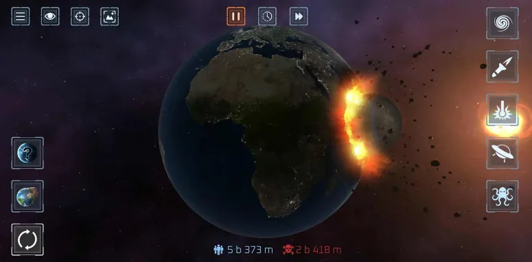 1、多种星球与武器:能选取如地球、火星等多种真实行星,还有50多种武器,像激光、陨石、核弹等,可尽情摧毁行星与卫星,满足收集欲望。