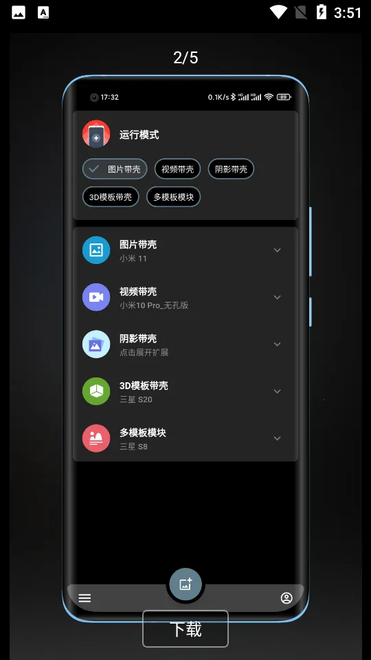 带壳截图pro破解版能满足你对独特截图的需求。它功能超强大,可一键完美截屏,支持悬浮窗截图截取软件内内容。能为截图添加各种酷炫效果,比如支持背景自动取色、高斯模糊、自定义背景颜色,让截图背景更出彩。还支持监听系统截图自动带壳,导入第三方及自定义模块,像相框、手机模块等,能编辑已适配模块,有普通生成和拉伸模式,可修改生成图片路径。它自带大量机型素材,适配多种常见手机品牌,如小米、三星、华为等。无论你是想制作精美的商品图,还是在朋友间炫耀,或者用于其他创意用途,带壳截图pro破解版都能轻松帮你实现,让你的截图与众不同,方便快捷又有趣,快来试试吧。