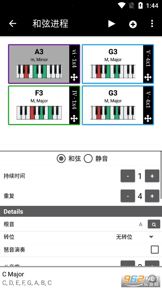 3. 丰富展示与试听创作:能展示大调与小调音阶中的多种内容,还可试听每个和弦或音阶声音并查看兼容和弦列表,便于创作。