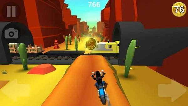 2. 以摩托车竞速为核心玩法,玩家能充分感受驾驶摩托的自由与快感,沿途收集硬币解锁独特车辆与个性服装。