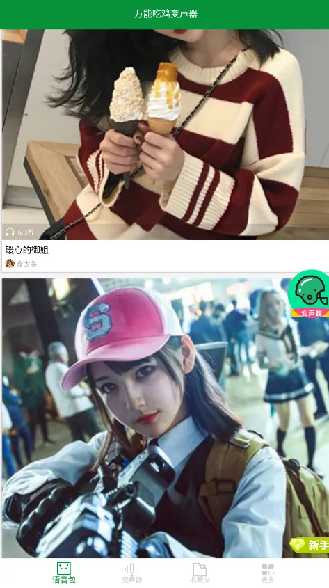 万能吃鸡变声器是一款专为游戏玩家打造的实时语音变声工具。它核心功能强大,能实时变声,适配多场景。软件亮点诸多,占用内存小,实用且适合热门游戏。其附带丰富语音包,从萌妹音到大叔音等应有尽有。支持实时变声和语音录制,还能随意调节变声的语速和音调。使用时,首次打开需勾选隐私政策等进入主界面,在语音包页面挑选喜欢的点击进入详情页,选好语音内容点击播放按钮就能听到效果,收藏点星形图标。快来下载,让游戏互动更有趣!