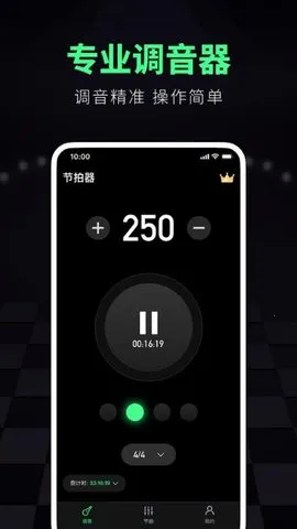 调音大师安卓版是简单易用的调音器和节拍器软件,能模拟真实吉他调音,有丰富调音器满足不同乐器需求,提供多种模式,可在线精准调音、校准节拍、识别音乐,界面简单,新手易上手。