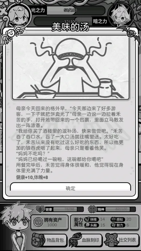 天使模拟器是一款文字题材模拟游戏,采用黑白漫画风格。玩家扮演天使,在天界救赎部为倒霉短命鬼提供庇护。地狱会派人索取庇佑人性命,需巧妙应对。可改写庇佑人命运,面临诸多选择与意外。游戏为庇佑人设计多种职业,如厨师、猎龙人等。还能与角色互动增加好感度,达成条件可结婚。通过光之力施展神迹,用光不足时找信徒祈祷补充。随着游戏推进,能体验不同情节,感受独特的策略养成乐趣,快来帮助庇佑人走向正轨吧。