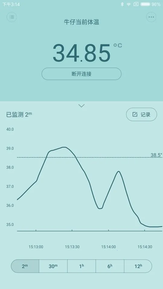 使用方法简单:先打开app连接体温计,再把体温计放小朋友胸口确保贴合,用水银温度计校准后设定报警上下限。体温超出阈值就会报警。