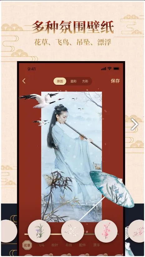 拥有海量唯美滤镜特效,以酡桂檀碧水黛绛嫣为类别的滤镜,能让照片古色古香,还有多种氛围壁纸,提供古风模板壁纸,让照片更有韵味,满满宫廷风。