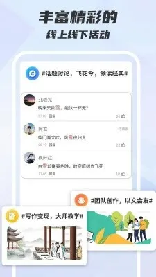 3. 特色活动丰富,覆盖作家课堂、好书共读等,还能与资深写手互动,获取专业经验实现创作增值。