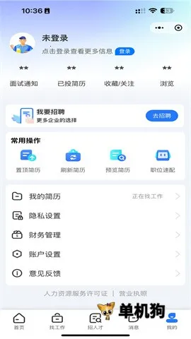 1、用户首先在APP的主页上找到"找工作"选项,点击进入。