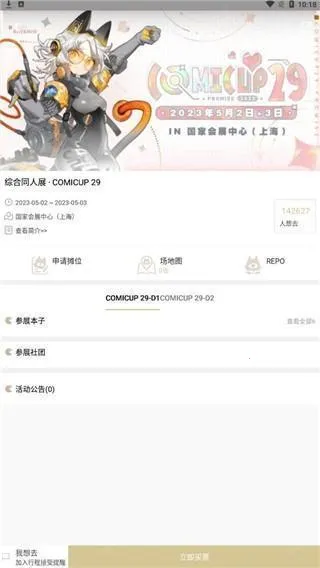 7、在首页我们还可以查看最新的漫展,以及漫展相关信息,还可以直接在页面处购票哦~