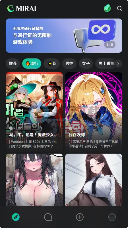 MIRAI AI聊天2026官方正版说明:这是一款主打情感交互与剧情沉浸的AI互动应用。区别于传统聊天工具,以故事引擎为核心。采用视觉小说式叙事界面,交互更具代入感。仅支持谷歌登录,登录后可开启无限制词功能,输入年龄选18岁以上即可。在首页选AI对象点击立即聊天,输入内容对方会回复。它能记住你的话,剧情随选择变化,有多种类型故事。任何人可成为创作者塑造角色分享故事,带你踏入独特的交互世界。