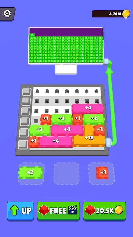 金钱键盘游戏,放置按钮即可开始赚钱。通过合并按钮升级获取更多收益,无按钮则无收益。能创建专属键盘,点击越多收益越丰,不断合并按钮,朝着亿万富翁迈进,点击即可畅玩。