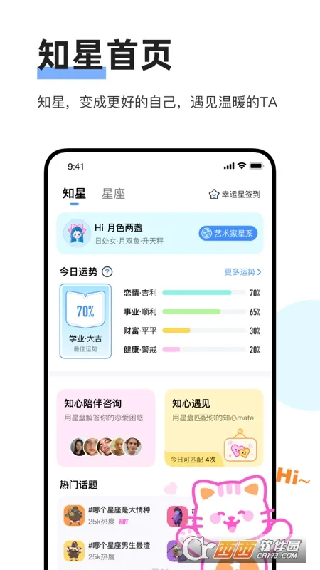 知星是一款融合心理学与天文学精髓的星座社交软件。它以西方占星学为主要依据,为星座爱好者及小白提供专业占星工具与大量定制化功能。