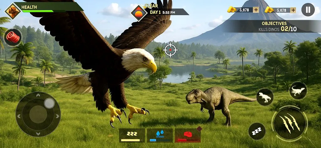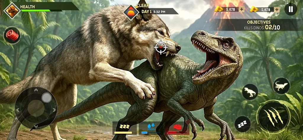 这款游戏能带你踏入史前世界,体验野生动物与恐龙为生存而战。你可扮演独特生物,探索危险区域、狩猎食物、解锁技能并进化。有多种生物可选,狼敏捷群居,虎伏击力强,狮领地意识佳,熊体型庞大,鹰视野超棒,狐狸聪明,犀牛防御力高。恐龙方面,霸王龙力量惊人,棘龙适应水生,南方巨兽龙伤害高,三角龙防御强,剑龙尾击厉害,异特龙速度快,迅猛龙群体敏捷,甲龙身披重甲。游戏还有多种生物群落,如丛林、湖泊、草原、沼泽、火山荒野。要通过狩猎生存进化,管理饥饿、口渴、耐力和健康。在战斗中运用技巧击败对手,并升级生物收集DNA和资源。其特色众多,有丰富可选角色、庞大开放世界、逼真动物行为、流畅操作战斗、成长进化升级,还有昼夜循环和动态天气。绝对值得一玩!