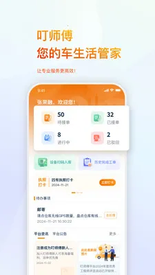 叮师傅是汽车后市场平台,即您的车生活管家。为工程师高效接单助力,通过智能派单系统,依技能和位置精准分配合适订单,提升效率与服务质量。订单管理便捷,能轻松查看详情、进度与记录。支持与后台实时沟通,快速解决任务问题。专注车务代办、设备安装等领域,快速响应客户需求。适用于汽车维修工程师等从业人员,让专业服务更高效。新版解决了部分样式及机型兼容显示问题。