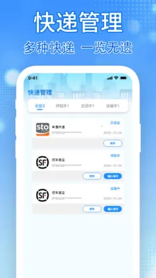 快递状态统一管理:待取件、派送中、运输中等快递状态分类展示,多个快递一站式管理,还能直接更新物流确认签收,随时掌握快递动态。