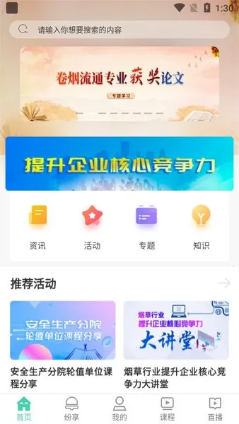烟草网络学院安卓版是中国烟草公司为在职员工打造的学习软件。围绕烟草行业展开课题,免费供员工进修,助力个人发展。每天更新行业新闻,提供全方位服务。有多种学习模式,满足不同需求;添加交流专区,可与专家交流;能保存重要资料随时查看。设置培训计划可获资格证,课程资料免费,大量课程可自主安排学习时间。还支持直播连线专家解答问题,是烟草行业从业者学习的好帮手。