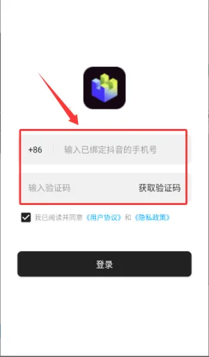 2、在该页面输入绑定抖音的手机号,获取并填写验证码。