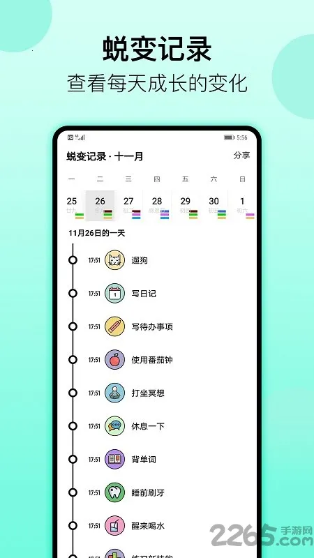 这是一款能助力用户养成良好日常习惯的应用。它功能丰富,能让用户轻松添加并坚持打卡小目标,记录时间还会及时提示。其界面精美且极简,有每日学习计划打卡、待办事项管理等功能,可助您合理规划时间、提高自律性。通过每天坚持打卡记录,能逐步实现减肥健身等各类生活计划。特色功能众多,如每日打卡、习惯补签、自定义添加习惯、每日一图、番茄计时等。软件亮点突出,可设置目标、打卡签到,还能邀请监督人围观,每次签到成功有成就卡片。用户点评很好,能帮您改掉晚睡、无法早起等坏习惯。不管您的坏习惯多严重,它都能慢慢帮您改正。您发起小目标,小伙伴能监督打卡进度,助您解决拖延问题。此外,还能和网友分享经验目标,一起交流进步。