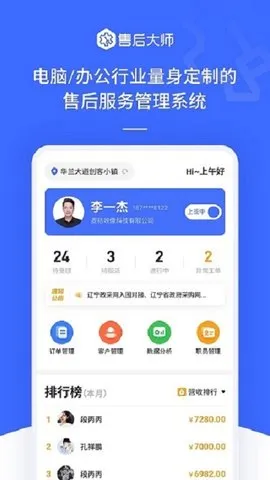 售后大师是一款售后管理云平台软件,能帮咱解决不少售后难题。它致力于售后服务精益化管理,提升客户服务体验,还能降低成本。