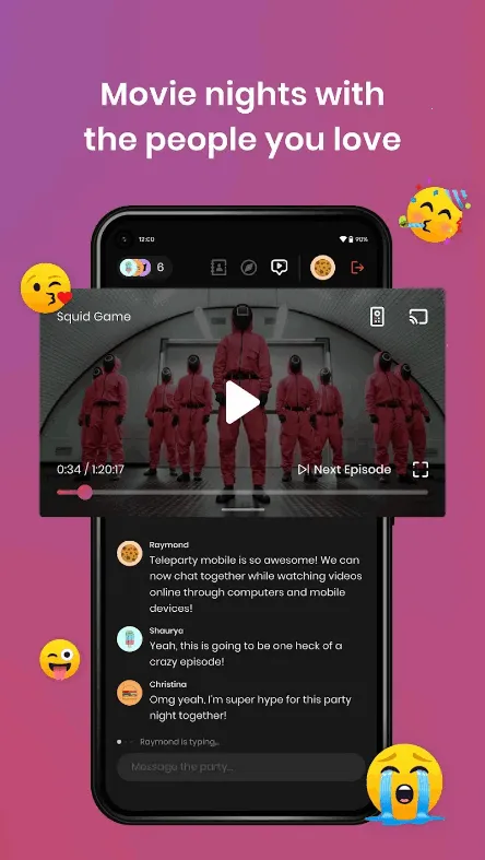 Teleparty原名NetflixParty,是一款社交软件。它打破地理限制,支持19个主流流媒体平台跨平台同步观影,播放进度完全一致。观影时能实时群聊互动,分享感受讨论剧情,还可发起投票。操作简单,安装浏览器扩展程序或手机应用,一键创建或加入房间,通过URL链接邀请好友。适用于异地恋情侣、朋友聚会、家庭娱乐互动等场景,让你随时随地与好友共享观影乐趣。快来本站下载体验!