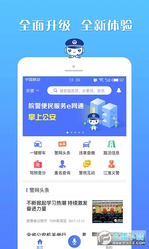 皖警便民服务e网通是安徽省公安厅官方发布的公安服务软件,由讯飞智元研发。提供一键挪车、违章查缴等160余项服务,涵盖户政、出入境等。有告知、查询、办事三大板块,还能分享资讯,让群众少跑腿。