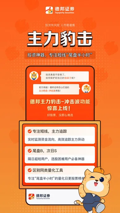 德邦证券是一家实力较强的券商。它是较早获批互联网证券业务试点资格的券商,积极探索互联网金融业务,与BAT平台对接,还布局海外业务服务全球。在创新方面成果显著,创立财富玖功品牌,推动企业上市,获得多项荣誉。作为中国财富管理领域先行者,为机构与高端私人客户提供全面财富管理服务,主办多个高峰论坛,研究实力卓越。其手机App高端版功能超丰富,有724实时财经资讯、场内基金交易、理财商城、手机极速开户、新股申购、投顾服务等。能让你随时了解市场行情,轻松进行投资理财,比如快速打新、挑选理财产品等,满足各种投资需求,无论你是新手还是有经验的投资者,都能借助它更好地实现资产配置,做出合理投资决策。