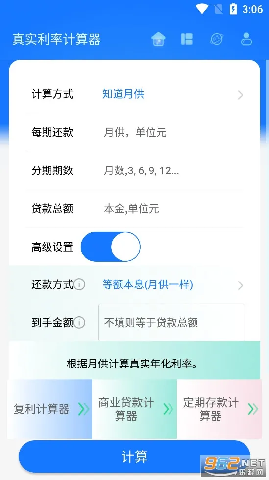真实利率计算器APP可算商业贷款真实利率,能换算金额单位,计算准确。功能丰富,支持多模式输入、提前还款模拟等,还有多种专项计算工具,结果可图表列表呈现并导出,免费无广告,使用便捷。