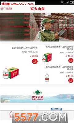 3. 产品信息多样:提供各种桶装水大小选择,能分类展示农夫山泉产品,还有搜索功能,方便快速找到所需商品,还可分享商品信息。