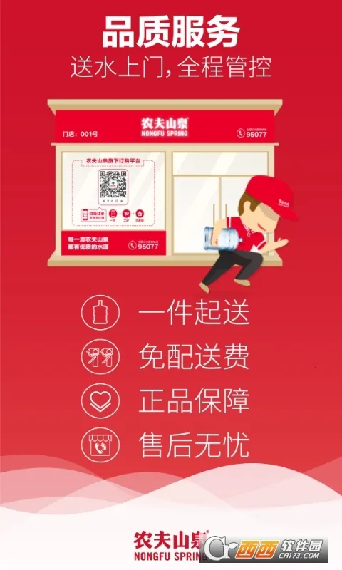 送水到府是农夫山泉官方推出的一款便捷好用的手机线上订水软件。它能解决你订购农夫山泉桶装水的难题,提供全方位优质送水服务。