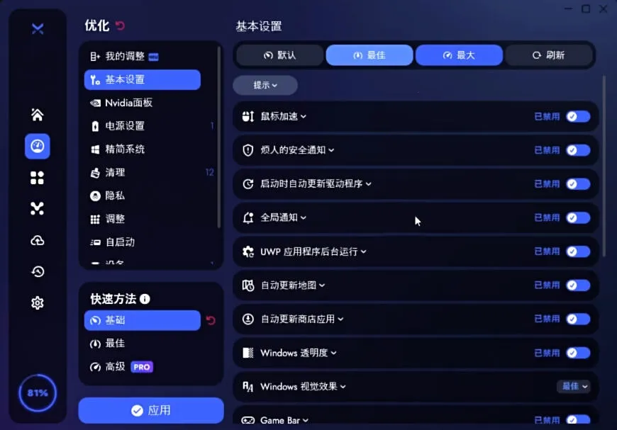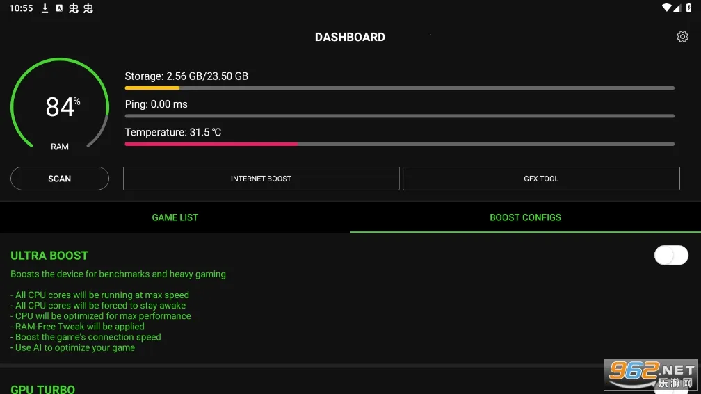 BoosterX是一款备受关注的系统优化工具。它能助力提升游戏体验并优化系统性能,拥有针对特定游戏的优化选项,可依用户需求调整。每天有大量PC被优化,世界各地众多用户在使用。基于包含HWID请求的唯一IP,能实现高达45FPS的提升,当然FPS提升取决于硬件。其界面设计美观,步骤简单易懂,功能强大,能帮手机更好运行。它提供加速器、清理器和优化器等功能,可更好地管理手机。还具备硬件监控,能检测并测量输入设备与系统间的延迟时间,提供系统优化工具,减少系统延迟,优化性能,让用户在各类活动中获得更好体验,总体来说表现出色。