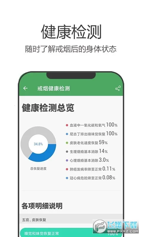 如果你想知道戒烟后健康恢复到100%需要多少天,戒烟军团这款app能帮到你。它专为想戒烟的人设计,功能超强大。能制定个性化戒烟计划,记录每日吸烟次数,通过数据图表追踪进展。还有丰富学习资源,包括成功案例和专业建议。它能帮你克制烟瘾,有各种实用小方法。能记录并控制每日抽烟量,通过精确图表分析和人性化控烟计划,让少抽烟成为现实。加入专属社区,能和百万烟民分享心得、抱团戒烟。软件会根据戒烟时间升级级别,给你满满的成就感。有科学的数据统计,让你随时了解自己的戒烟效果和身体恢复情况。在这里,你能清楚看到自己戒烟的每一步,朝着健康目标迈进,虽然无法确切告知健康恢复到100%的天数,但能助力你更快更好地实现健康戒烟。