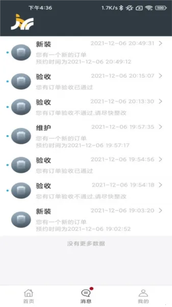 特色功能实用:上班按钮可记录考勤和分派订单,订单列表按下单时间倒序排列,还有今日收入额统计,方便工程师了解收益情况。