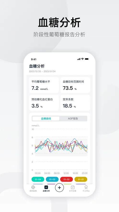实时连续监测血糖,数据以可视化呈现,方便随时查看,还能生成分析报告,助您了解自身血糖变化规律。