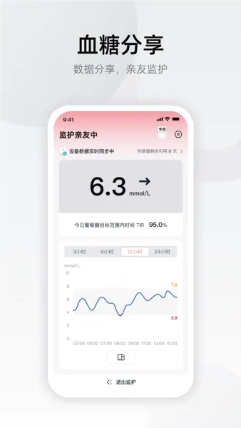 具备亲友监护功能,可轻松管理家人血糖数据,为家人健康护航,实现远程关爱。