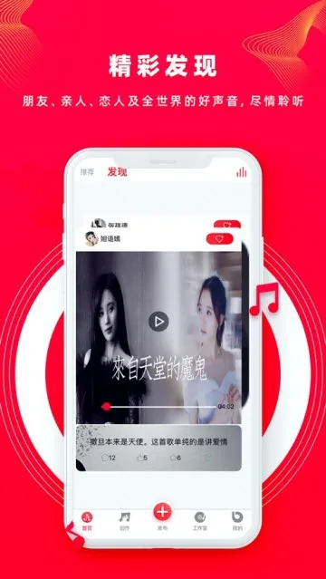 2. 打造音乐社交圈,能轻松听到和分享与众不同的声音与作品,让更多人听到你的创作。