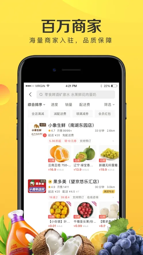 覆盖广泛:已入驻全国超2000个市县,合作商家超百万家,一二线城市3公里生活圈全覆盖。