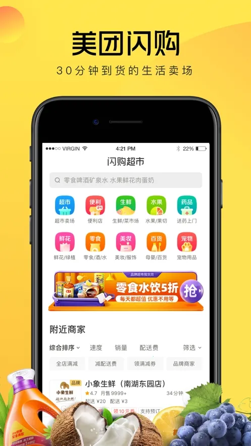 美团闪购是美团旗下即时零售平台,整合超市、便利店等本地商家,提供海量商品。依托强大配送网络,30分钟送达。有多样优惠,严格商家审核,覆盖超2000个市县,合作商家超百万家,满足多样即时消费需求。