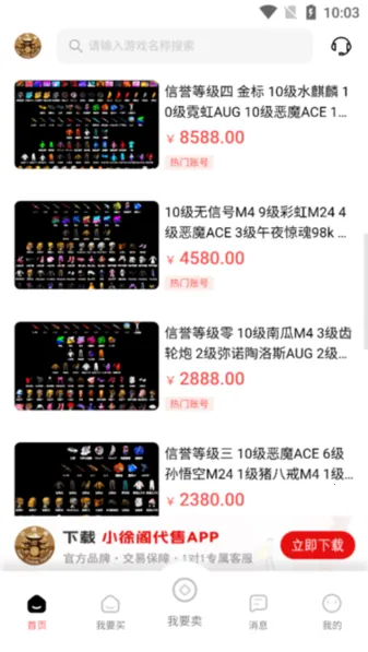 小徐阁最新手机版是专注游戏交易的平台,汇集海量账号、道具和货币。有简单搜索功能,支持多热门游戏交易,涵盖端游手游。通过多重安全机制保障交易安全,提供找回包赔服务及专业客服支持。