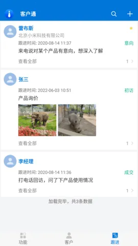 1. 功能丰富多样:涵盖客户管理、名片扫描、附件管理、记事备忘、工作日程、回访提醒、生日提醒等诸多功能,满足销售及客户管理相关人员的多样需求。