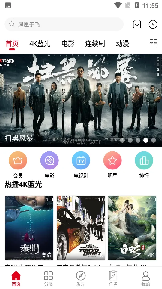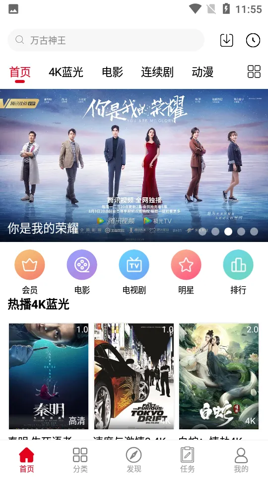 支持搜索功能,打开平台就能快速加载喜欢的作品,在线无压力观看。