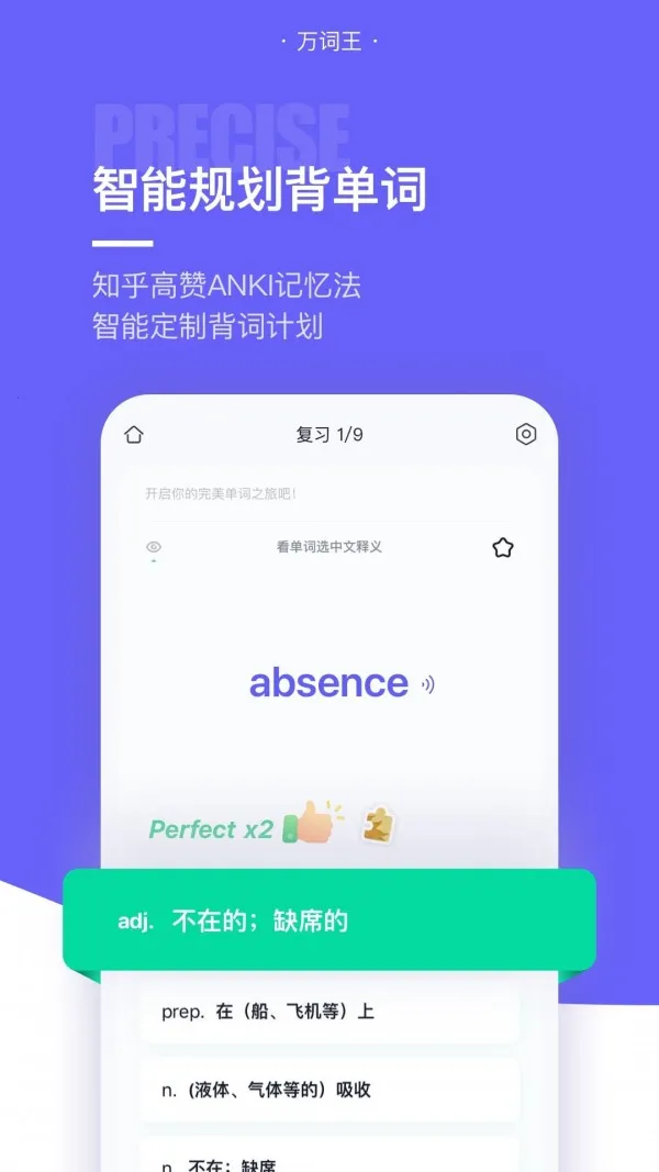 完美单词王是完美世界控股集团研发的单词背诵软件,能提供轻松的单词背诵服务。有单词视频、四维助记等特色功能及多种听词模式,涵盖丰富词书词库,免费且不断更新,助用户全面提升英语能力。