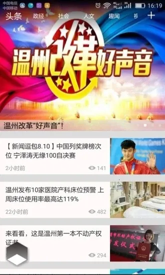 温州新闻APP是温州市委市政府唯一新闻客户端,由温州市新闻传媒中心倾力打造。它能满足你对温州新闻发布会相关信息的需求。首页保留多个内容频道,增设活动订阅、问政便民、视频等栏目窗口,突出服务性与互动性。在这里,你能极速了解温州本地最新重大新闻事件,还可参与本地问政,查看丰富全面的问政内容及回复信息。整合20多款知名微信公号资源的订阅窗口,让你获取更多资讯。便民窗口提供挂号、快递查询、水电气缴费、违章处理等服务。活动窗口汇聚各类公益文化等活动,可自由分享新闻文章,还有实用的缓存清理功能。操作简单易上手,界面简洁,给你良好使用体验。无论是想知晓温州大事,还是享受便捷生活服务,它都能满足你,快来下载吧!