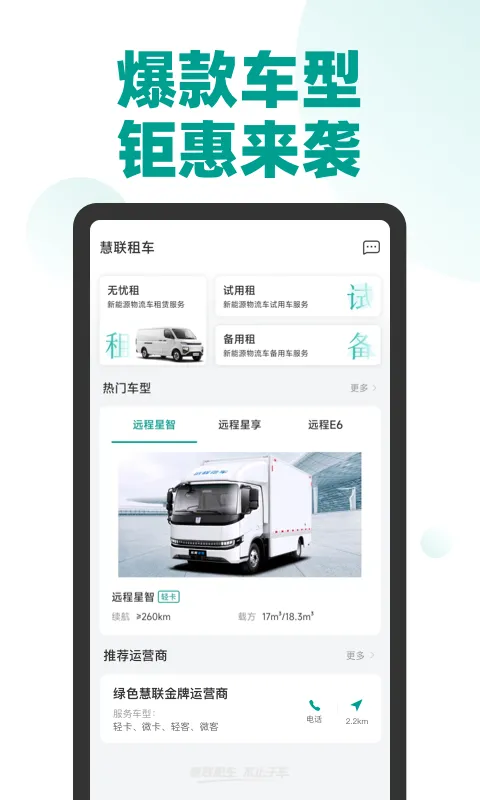 其全国化的运营网络,规模化的运营能力,智能化的租用情况,都为用户带来了良好体验。用户不用担心费用问题,每辆车费用实惠,领取优惠券还能获得额外服务。软件还具备售后保障、24H救援、充电运维、优质货源等特点。