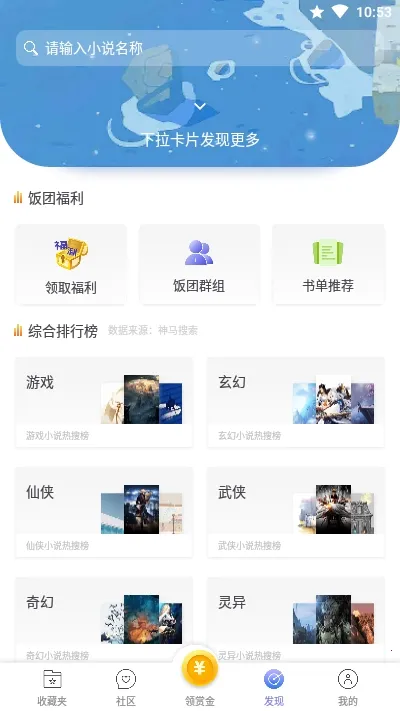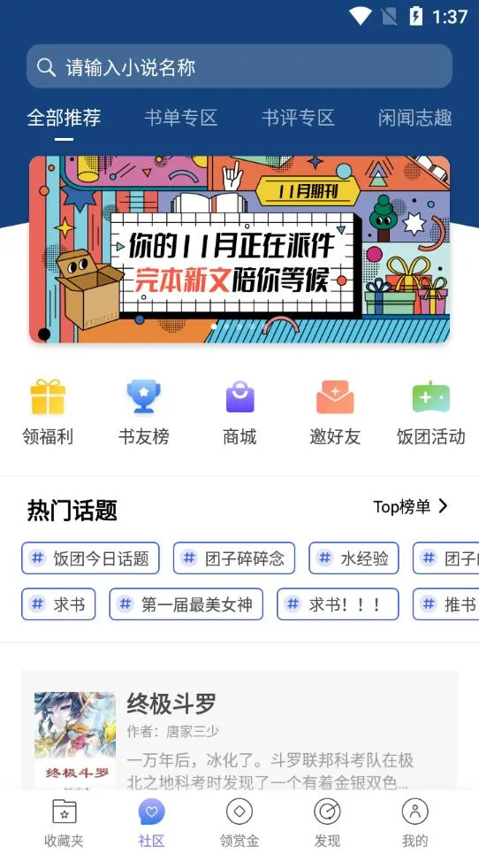 3、互动社区乐趣多:各类小说大触倾心吐槽,能快速求书,自由评论畅聊书海。大家还能发布生活趣事交流互动,以文会友。