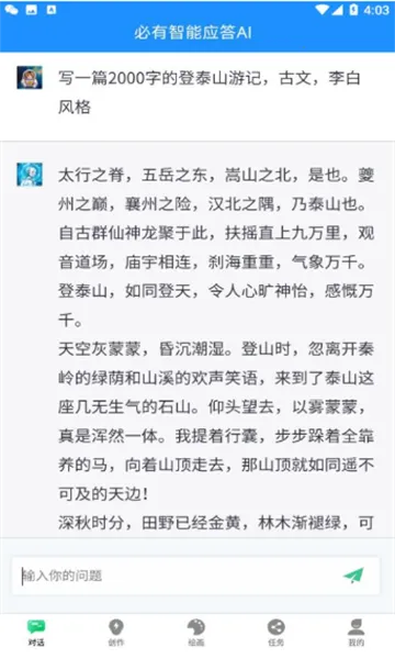 必有智能应答 AI 是人工智能对话问答软件,搭载最新大模型。支持智能对话、联网搜索回答,有创作中心等多样功能。软件优势明显,功能强大、创作丰富,分享有福利,支持 VIP 会员,签到免费,精准高效,还可离线使用。