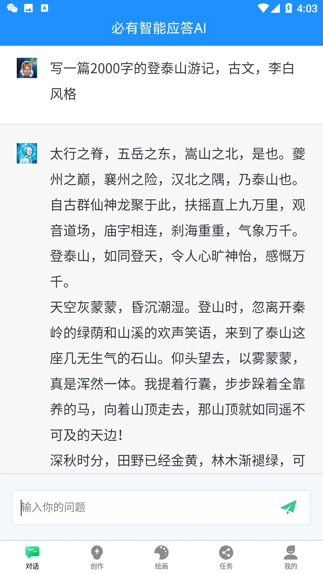 2. 创作风格多样:能进行各色文案和绘画创作,多种创作类型和风格轻松实现,自定义、模板选择等助力高效创作。