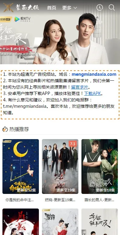 蒙面大侠这类软件能满足你追剧的各种需求。它聚合了丰富的影视资源,像电影、电视剧、综艺、动漫等应有尽有,全网绝大部分资源都能找到。这里的影视资源免费在线观看,无需登录注册,打开就能马上播放想看的剧。画质超给力,1280p超高清,播放流畅不卡顿,拒绝广告打扰,给你纯粹的观影体验。软件还会实时同步更新剧集,有新剧更新马上提醒,让你不错过任何精彩。它能解决剧荒问题,帮你找到各种类型的热门影视。而且使用方便,可随时在线播放,也能下载离线观看,还支持投屏到电视上,超大屏幕看剧更爽。要是软件使用不了,常见原因及解决办法也都有,比如清理缓存垃圾、关闭过多运行程序、注意下载渠道及更新版本等。总之,是追剧的好帮手。
