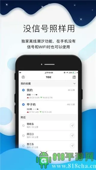 1. 拥有独家离线潮汐实时预测功能,即便手机没信号和 WIFI 时也能放心用。
