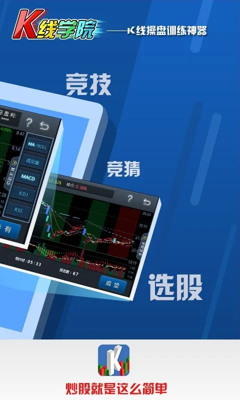 K线学院是专为炒股爱好者打造的线上模拟教学平台,提供视频教学,真实模拟股票走势。具备多样化功能窗口,设置虚拟投资交易模式,涵盖培训、买卖、分享、竞赛等功能,助用户学习投资知识与交易技巧。